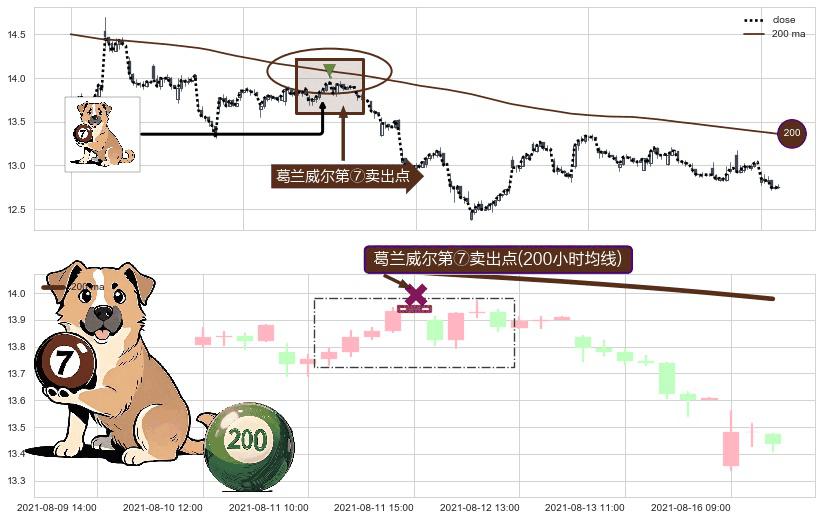 ⚀ 2021-08-11 15:00:00-小时显现 葛兰威尔均线 200小时均线 第⑦卖出点 下降趋势的中继信号,后市看跌,卖出信号