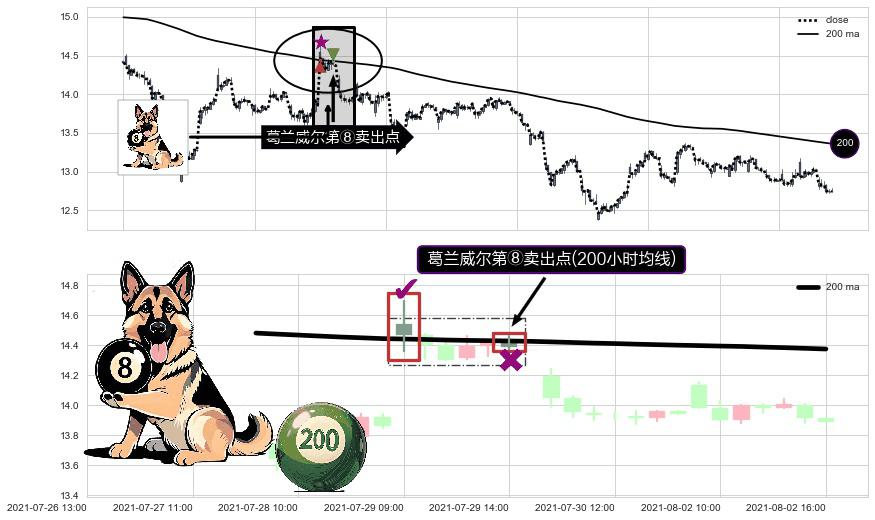 ⚀ 2021-07-29 14:00:00-小时显现 葛兰威尔均线 200小时均线 第⑧卖出点 下降趋势的中继信号,后市看跌,卖出信号