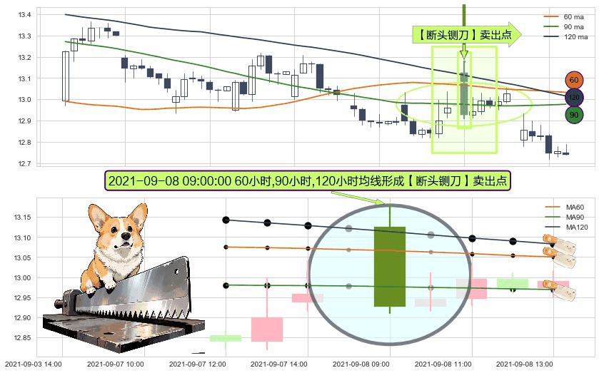 ⚀ 2021-09-08 09:00:00小时显现 60小时-90小时-120小时均线 【断头铡刀】卖出点 看空信号,后市看跌,卖出