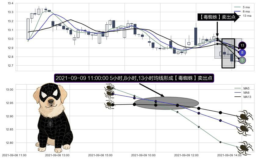 ⚀ 2021-09-09 11:00:00小时显现 5小时-8小时-13小时均线 【毒蜘蛛】卖出点 看空信号,后市看跌,卖出