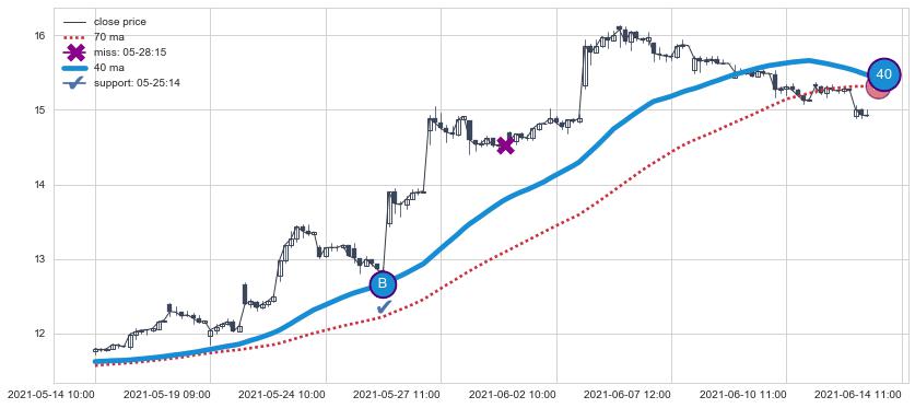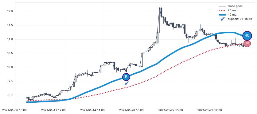 ⚄ 均线向上突破后价格围绕均线附近波动,并未远离均线,再次向下破位后维持原均线下跌趋势【极强】