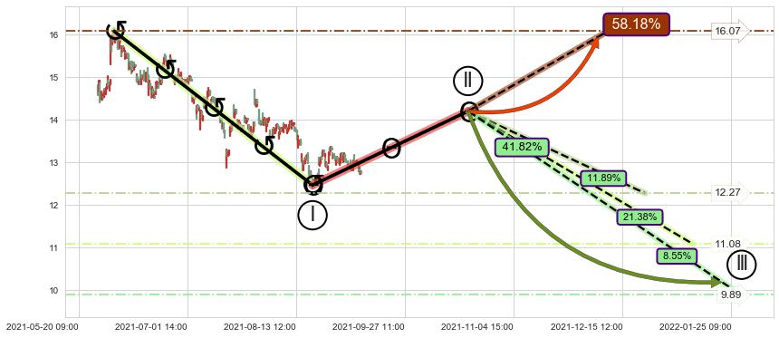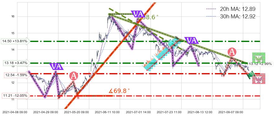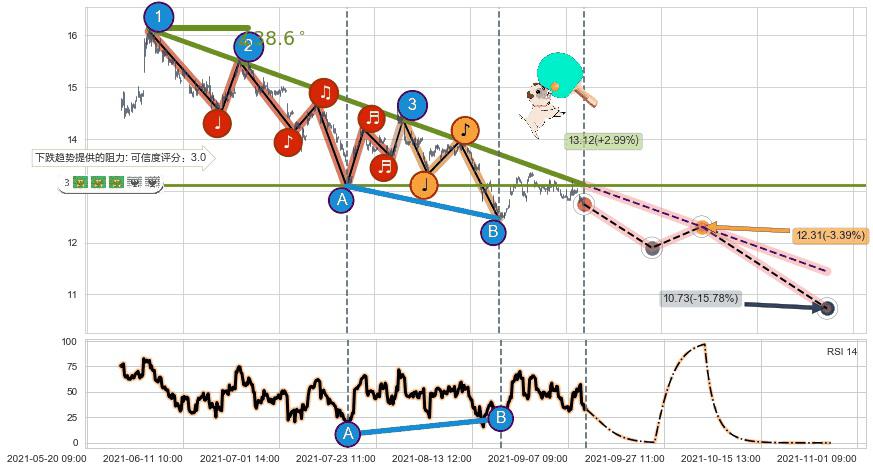 ➣ 预测:2021-10-05 11:00,【试探阻力】稳定目前下跌趋势的前提下,预测价格:12.31