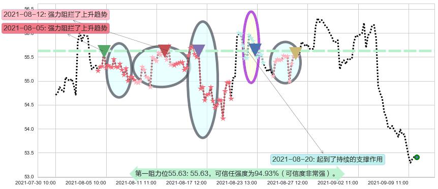 ♘ 阻力价格位55.63,可信任强度94.93%,距离最后交易2021-09-09 15:00形成的收盘价格53.41相差 +4.17%