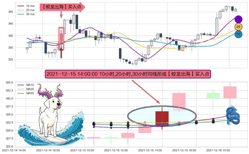 形态多维评估: ⚀ 2021-12-15 14:00:00小时显现 10小时-20小时-30小时均线 【蛟龙出海】买入点 看多信号,后市看涨,买入