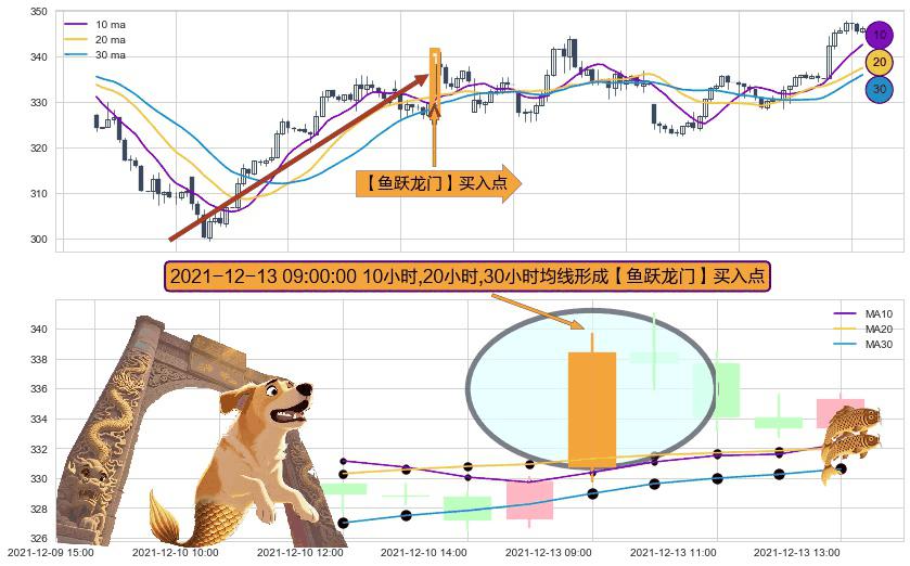 形态多维评估: ⚀ 2021-12-13 09:00:00小时显现 10小时-20小时-30小时均线 【鱼跃龙门】买入点 看多信号,后市看涨,买入