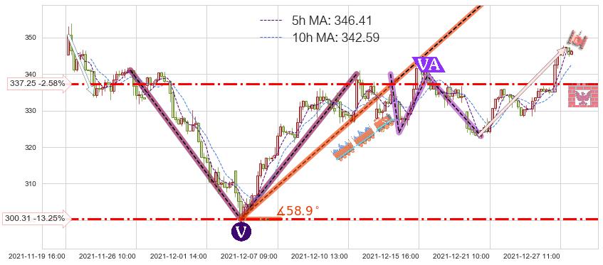 ➣ 【已确认突破】最后价格:346.18与最小【整理】第一目标价格→(01-05:12: 289.10 )相较: 下跌空间【较大】