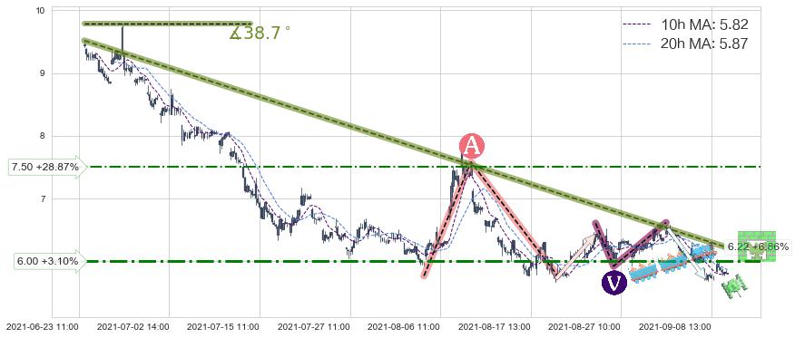 ♞ 10小时均线:5.82,20小时均线:5.87→ 快线<慢线