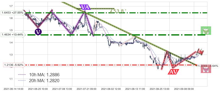 ♘ 阻力价格位1.4634,可信任强度90.61%,距离最后交易2021-09-09 14:00形成的收盘价格1.2900相差 +13.44%
