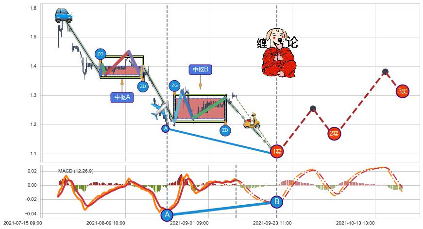 ➣ 【未完成】缠论 起点:07-21:09, 完成第1中枢A,完成第2中枢B,到达09-09:14