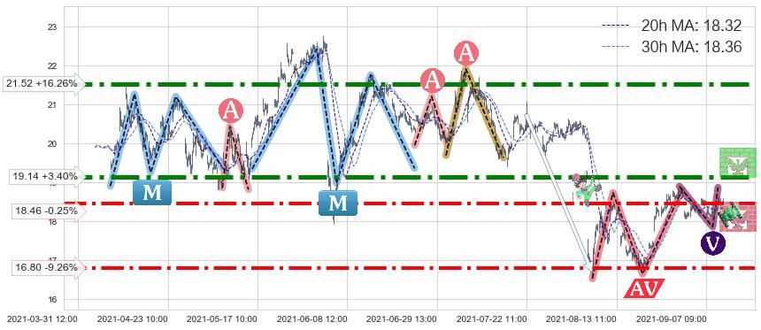 ♞ 20小时均线:18.32,30小时均线:18.36→ 快线<慢线