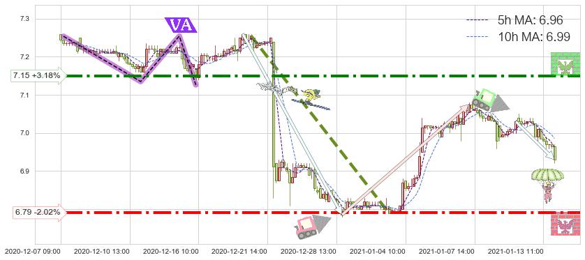 ♞ 5小时均线:6.96,10小时均线:6.99→ 快线<慢线