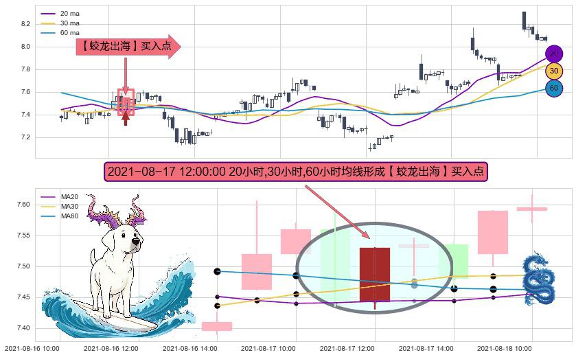 形态多维评估: ⚀ 2021-08-17 12:00:00小时显现 20小时-30小时-60小时均线 【蛟龙出海】买入点 看多信号,后市看涨,买入