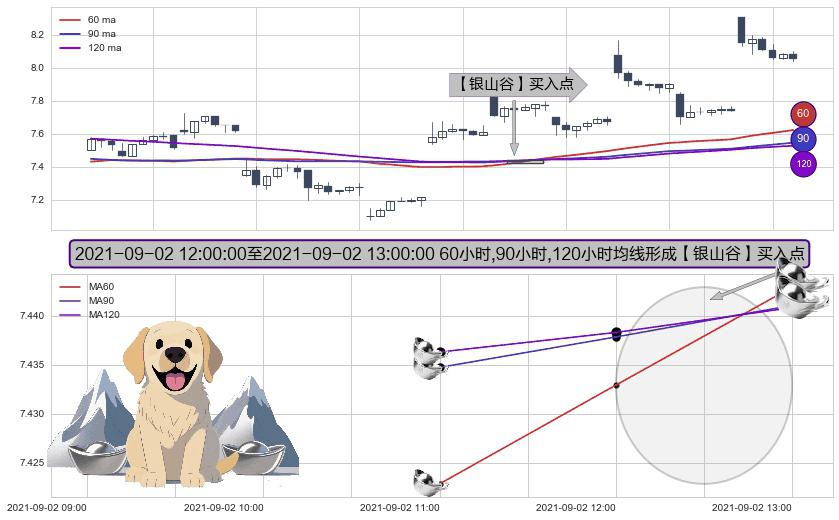 形态多维评估: ⚀ 2021-09-02 13:00:00-小时至2021-09-02 13:00:00-小时显现 60小时-90小时-120小时均线 【银山谷】买入点 看多信号,后市看涨,买入