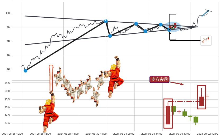 ➢ 【空方力量耗尽】已在09-08:10突破矩形提供的【阻力】颈线 96.14 →箱形震荡盘整结束