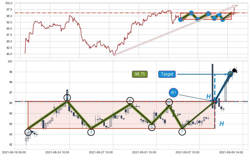 ➢ 【买1】: 激进型 买点 →(09-08:10: 96.14 )形成突破上涨矩形整理【整理】形态