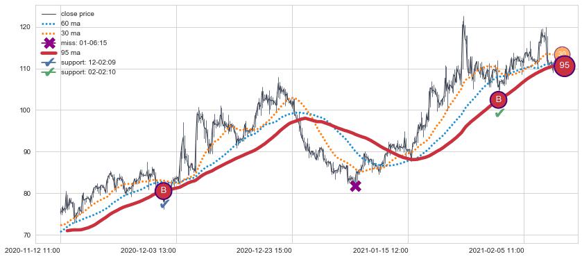 上涨趋势11-12 11:00-02-10 15:00,均线95确认关键支撑2处