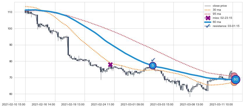 下跌趋势02-10 15:00-03-11 10:00,均线60确认关键阻力1处
