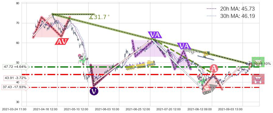 ♘ 支撑价格位43.91,可信任强度72.31%,距离最后交易2021-09-09 14:00形成的收盘价格45.61相差 -3.72%
