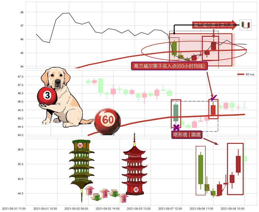 ➢ 低点影线(09-03:10: 46.15 )→回踩→第一根k线高点(09-01:14: 46.21 )