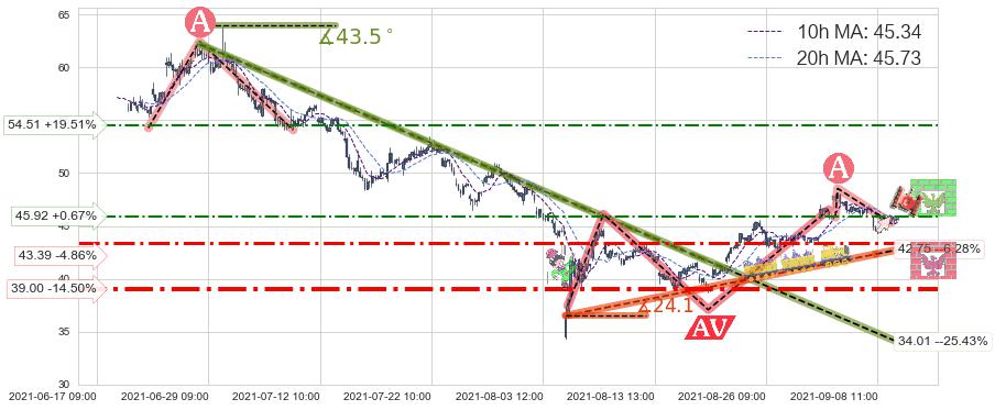 ♘ 支撑价格位39.00,可信任强度72.32%,距离最后交易2021-09-09 14:00形成的收盘价格45.61相差 -14.50%