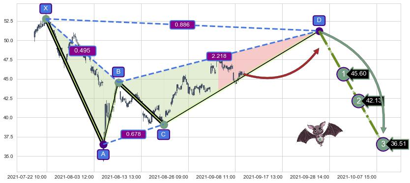 ➣ 未完成【蝙蝠】形态起点X: 07-22:09, 已到达C点: 08-19:13, 预测最终D点: 09-27:10, 共264交易小时