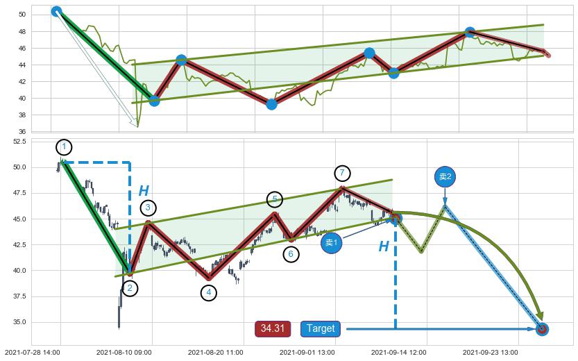 ➣ 最小中继整理跌幅→𝐇: 10.75 (𝐇旗杆的长度:旗杆起点→顶点)