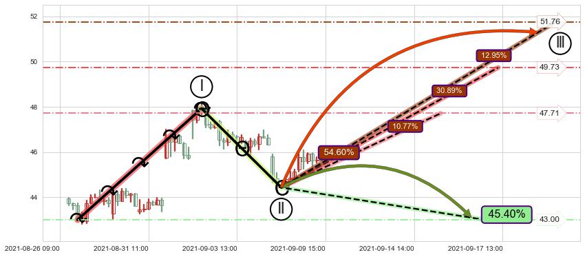 ➢ 循环浪继续向上【最低】位置(09-15:13, 47.71),匹配聚类样本比例19.72%, 可能性概率10.77%