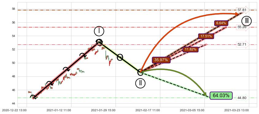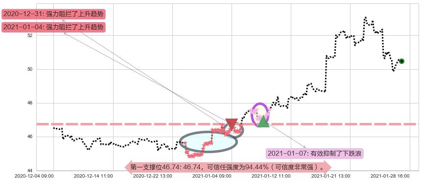 2021-01-07: 第一支撑位46.74有效抑制了下跌浪,成功阻止了价格的继续下跌。