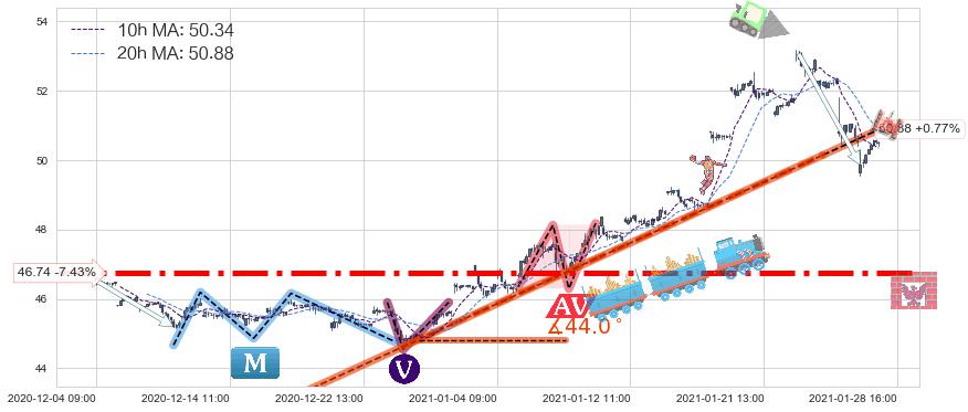 ♘ 支撑价格位46.74,可信任强度94.44%,距离最后交易2021-01-28 16:00形成的收盘价格50.49相差 -7.43%
