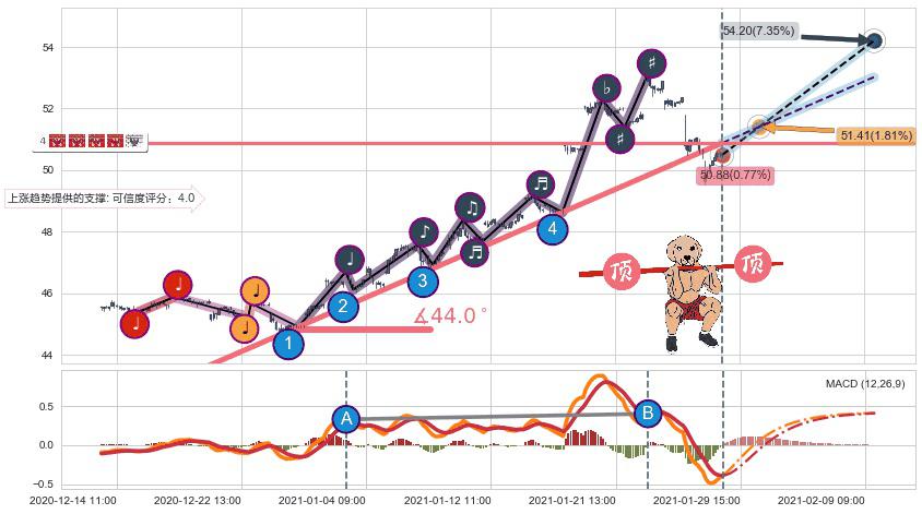 ➢ 预测:2021-02-01 15:00,【试探支撑】稳定目前上涨趋势的前提下,预测价格:51.41