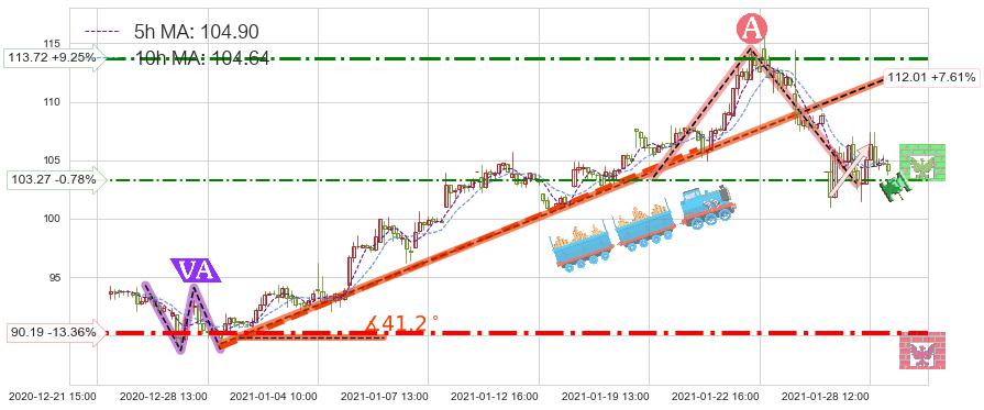 ♘ 阻力价格位113.72,可信任强度55.24%,距离最后交易2021-01-28 16:00形成的收盘价格104.09相差 +9.25%