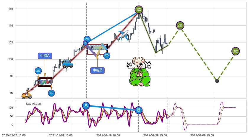 ➣ 【已完成】缠论 起点:12-28:16,完成第1中枢A,完成第2中枢B,终点:01-22:14,缠论共152交易小时