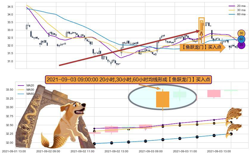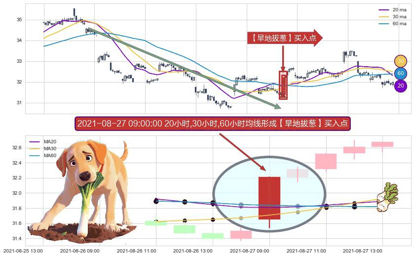 形态多维评估: ⚀ 2021-08-27 12:00:00-小时至2021-09-02 14:00:00-小时显现 30小时-60小时-90小时均线 【金山谷】买入点 其再次确认了买入信号,可靠性更强,买入