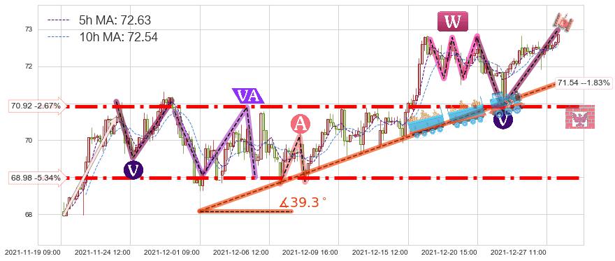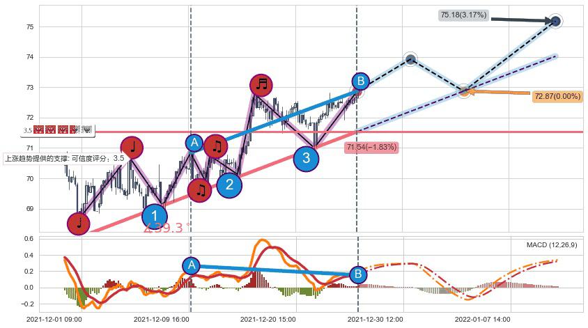 ➣ 预测:2022-01-05 09:00,【试探支撑】稳定目前上涨趋势的前提下,预测价格:72.87