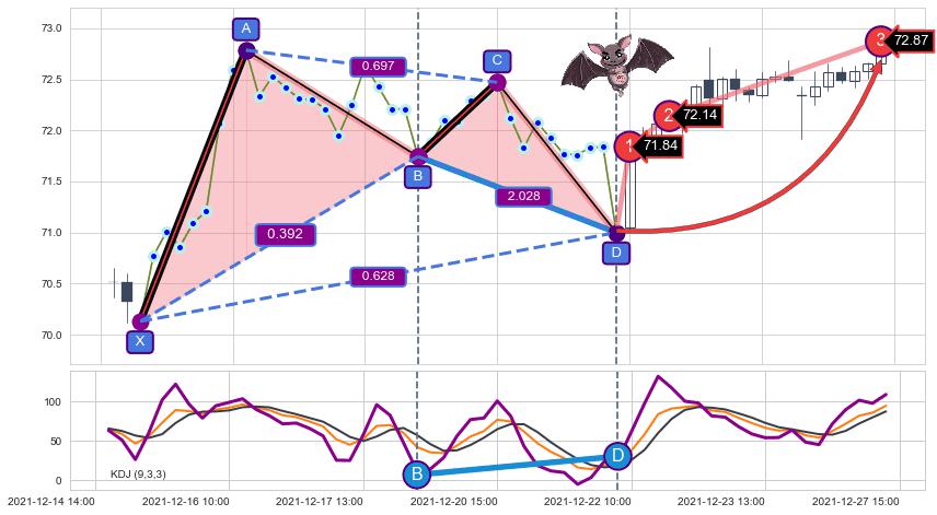➣ 已完成【蝙蝠】形态起点X: 12-15:10, 终点D: 12-22:09, 共37交易小时