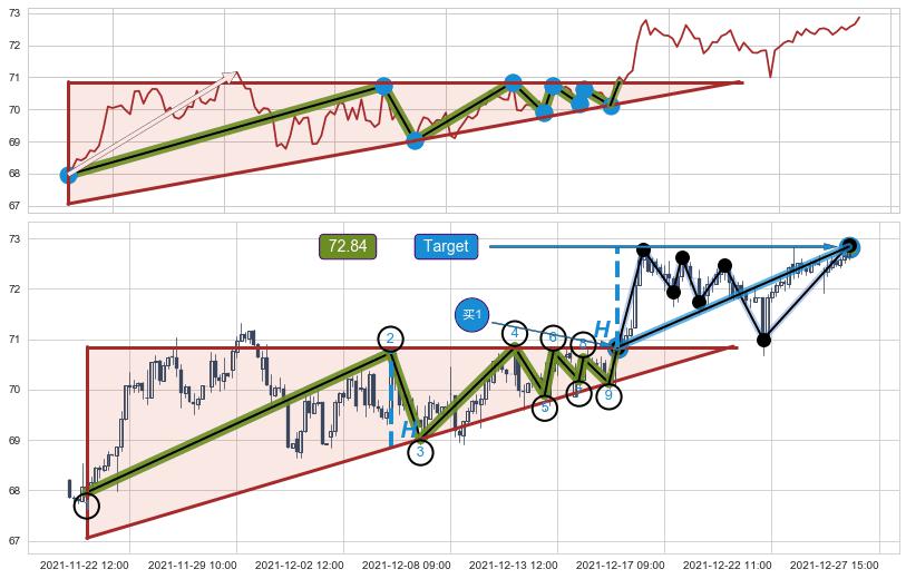 ➣ 12-22:13到达第❷价格目标位置72.14