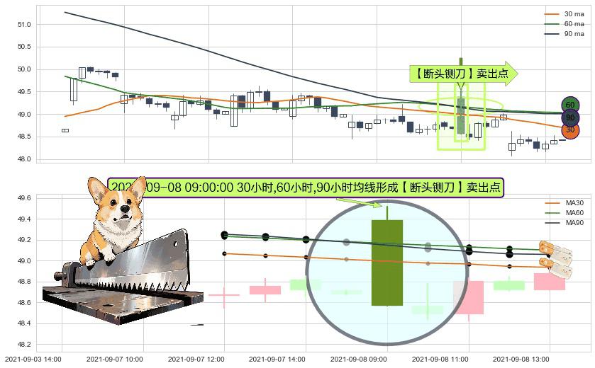形态多维评估: ⚀ 2021-09-08 09:00:00小时显现 30小时-60小时-90小时均线 【断头铡刀】卖出点 看空信号,后市看跌,卖出