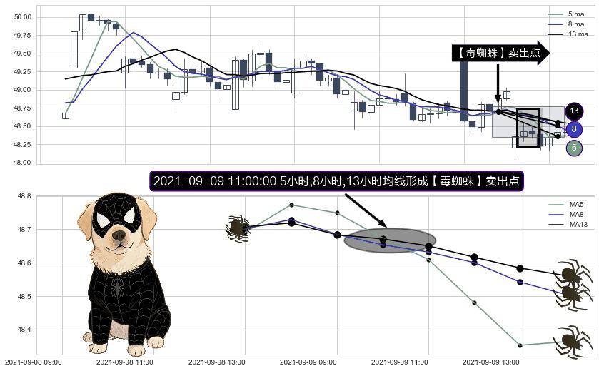形态多维评估: ⚀ 2021-09-09 11:00:00小时显现 5小时-8小时-13小时均线 【毒蜘蛛】卖出点 看空信号,后市看跌,卖出