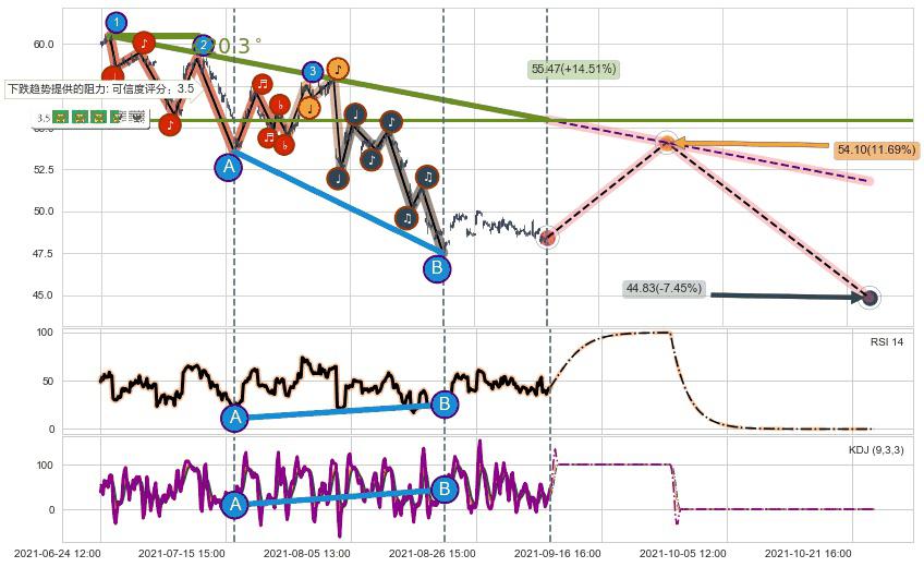 ➣ 预测:2021-10-26 10:00,【继续下探】稳定目前下跌趋势的前提下,预测价格:44.83
