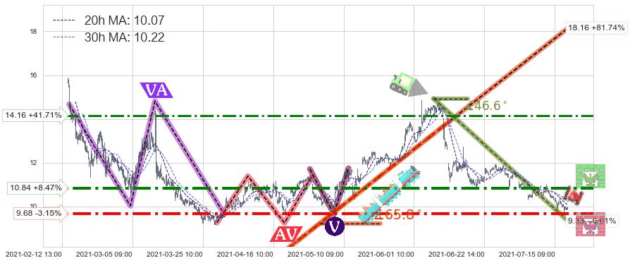 ♘ 支撑价格位9.68,可信任强度81.48%,距离最后交易2021-07-19 15:00形成的收盘价格9.99相差 -3.15%