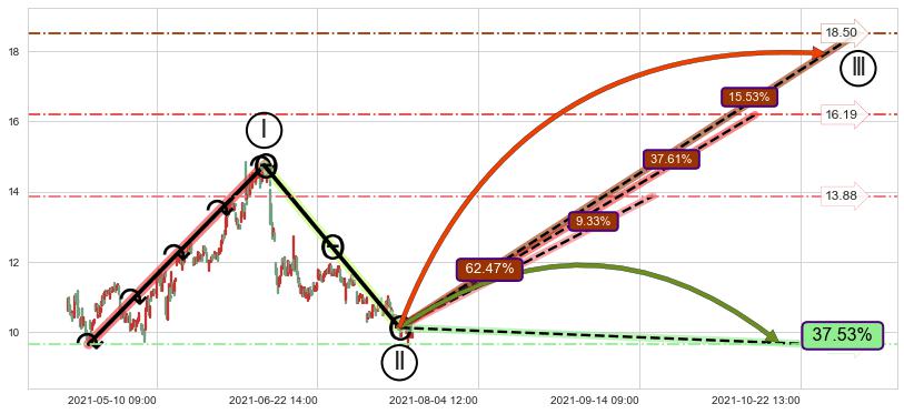 ➢ 循环浪继续向上【最低】位置(09-16:12, 13.88),匹配聚类样本比例14.93%, 可能性概率9.33%