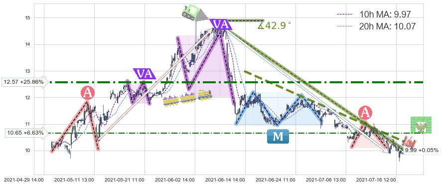 ♘ 阻力价格位10.65,可信任强度34.19%,距离最后交易2021-07-19 15:00形成的收盘价格9.99相差 +6.63%