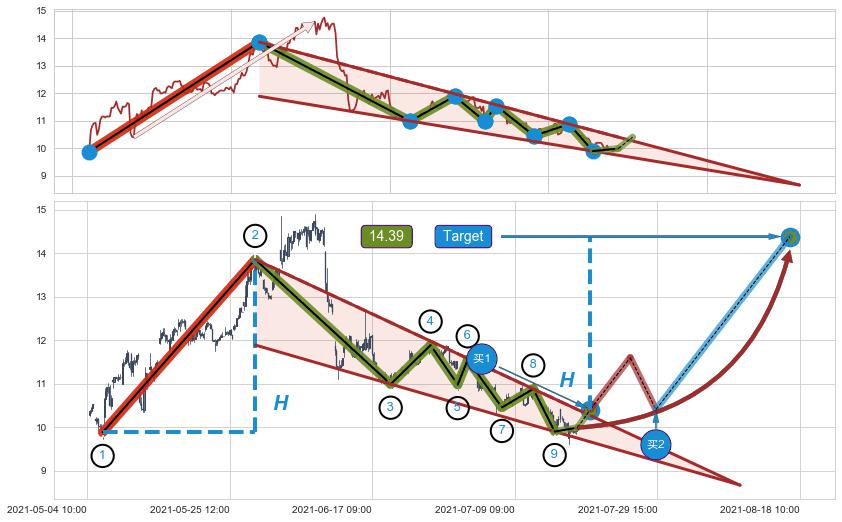 ➢ AI智能【预测第一最小【整理】目标价格】: 突破后1𝐇→(08-18:10: 14.39 )