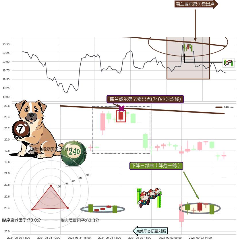 | 7 🅚:【绝命跳】卖出点 ➕ ☯️:缠论中枢点下降缠中枢B破位后距离1买距离较远,随后猜想后续持续下跌(趋势跟踪) ☞ 看空信号 ⇥ 【均线】交织【图形】⇥ 综合量化分数: 25 | > |