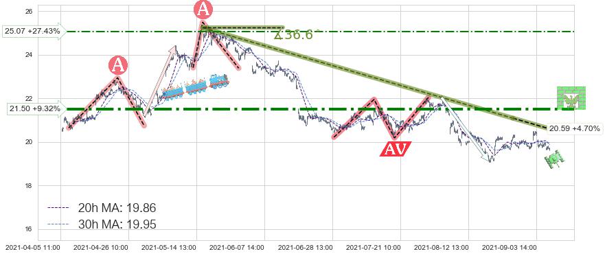 ➣ 预测:2021-10-12 11:00,【试探阻力】稳定目前下跌趋势的前提下,预测价格:19.16