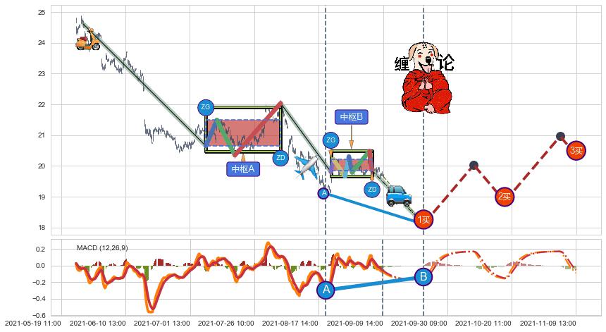 | 13 🅚:下跌两颗星 | 下跌三颗星 ➕ ☯️:缠论中枢点下降缠中枢B破位后距离1买距离较远,随后猜想后续持续下跌(趋势跟踪) ☞ 看空信号 ⇥ 【🅚线】交织【图形】⇥ 综合量化分数: 48 | > |
