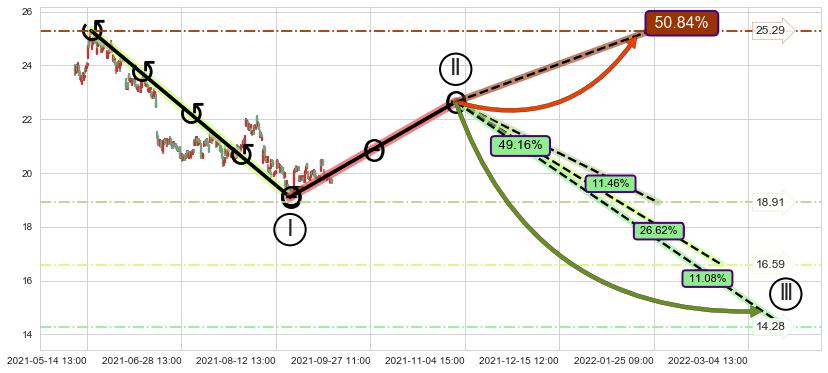 ➢ 循环浪继续向下【最低】位置(03-21:15, 14.28),匹配聚类样本比例22.54%, 可能性概率11.08%