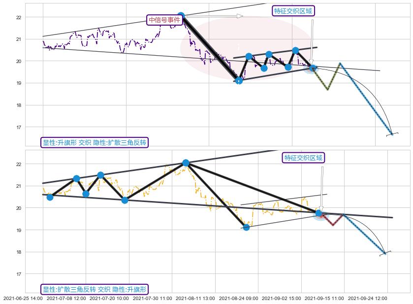 | 2 ☯️:缠论中枢点破位中枢B支撑下拉 ➕ 📐:扩散三角反转支撑破位转换阻力下跌 ☞ 看空信号 ⇥ 【图形】交织【图形】⇥ 综合量化分数: 41 | > |