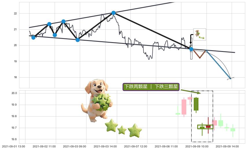 | 3 🅚:下跌镊子线(n形磁铁) ➕ 📐:扩散三角反转下行突破支撑位破位, 猜想持续下沉下跌,被突破的支撑位已变为阻力位 ☞ 看空信号 ⇥ 【🅚线】交织【图形】⇥ 综合量化分数: 44 | > |