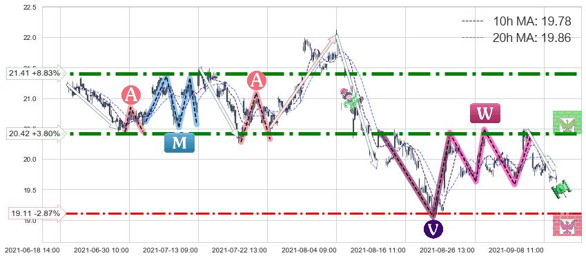 ♘ 阻力价格位20.42,可信任强度99.45%,距离最后交易2021-09-09 14:00形成的收盘价格19.67相差 +3.80%